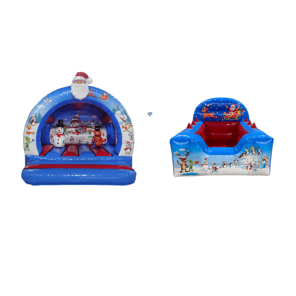 Double the festive fun with our Christmas-themed Curved Bouncy Castle and Air Juggler Ball Pit! Featuring a delightful design with reindeer and snow-man bish bash and 3D and Father Christmas head on the arch of the bouncy castle. Paired with the Air Juggler Ball Pit, kids will love the magical experience of floating balls and colourful play.