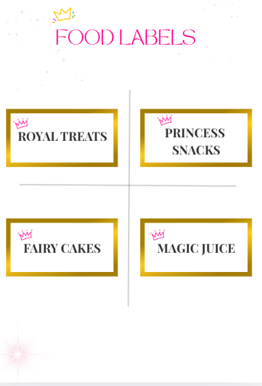 - 2nd file includes: Page 17 to 28 – food labels, cake toppers and princess games